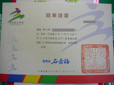 提到學習,這次的訓練屬於基礎班,為期兩個星期,課程共分五大類:主計專業課程、主計資訊課程、主計人事相關課程、個人管理才能課程、其他課程。其中讓我印象深刻的老師有教內部審核實務的王惠津老師,她為人非常的親切,對上課內容無一遺漏,會盡可能提醒我們工作上需要注意的事項,希望我們不會重蹈覆轍。還有教導統計調查的潘寧馨老師,雖然講授的是一門很數學、很理論的統計課程,但是他會以實務為例,深入淺出,讓學員們能有具體的概念。認真的老師當然不能少提到教導政府採購法的梁靜媛老師,她的講課速度很快,但卻清晰明確,上課認真,將繁瑣複雜的採購法,以有趣的實例做解釋,課程中笑聲不斷,是一門很愉快的課程,這讓我好佩服老師的上課功力!雖然我是初任公職且工作經驗不多,但是聽了這麼多認真與功力深厚的老師講課,竟然能以輕鬆的心情學習,這都要再三感謝老師們的教導。